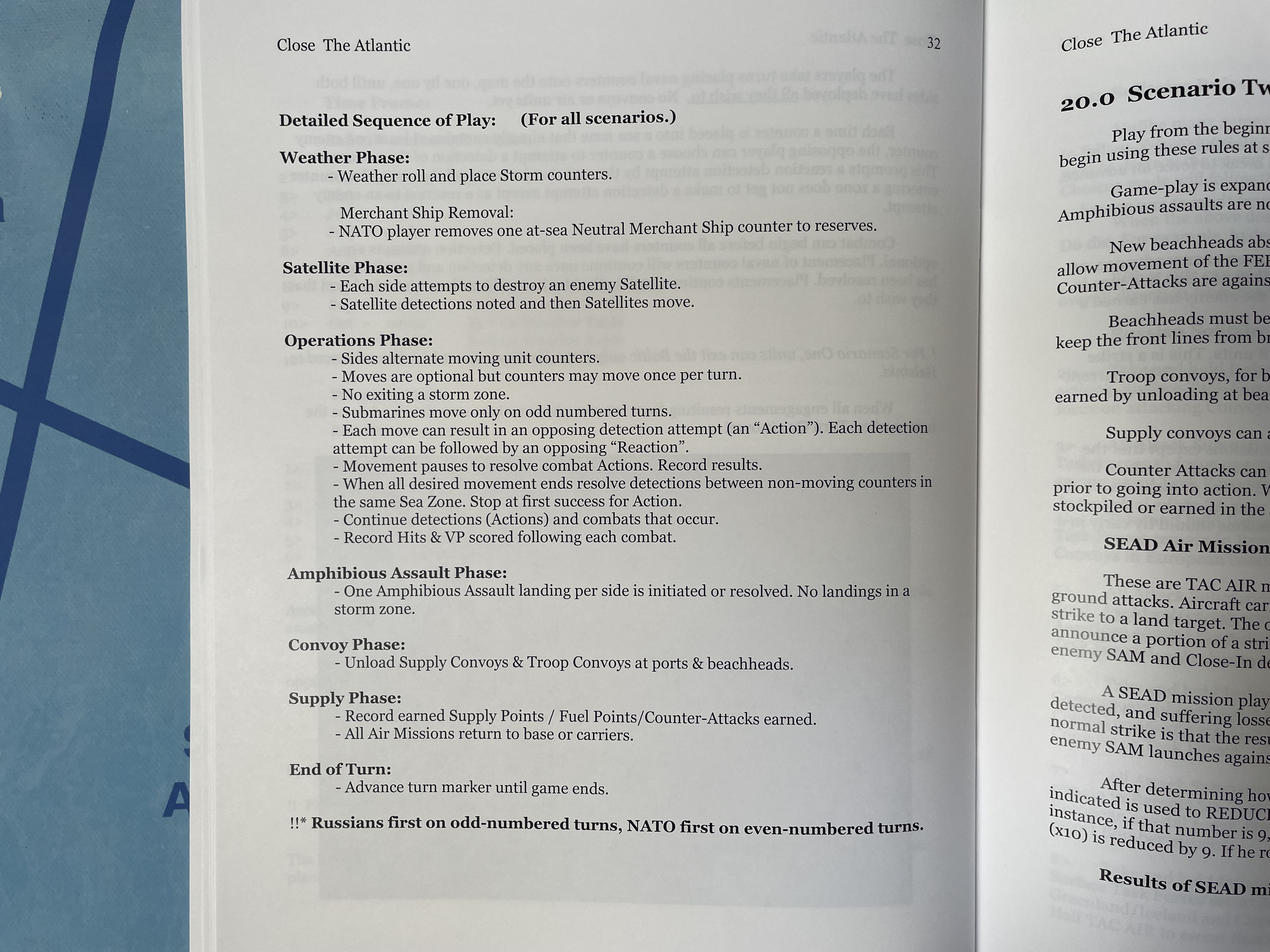 The heart of the Close the Atlantic: World War Three game. This is where the layout and logic of the rule book clearly starts to fail as the heart is bypassed several times. On page 7 of the rule book—in what should be a separate text box—one finds a “sequence of play” that goes like this: