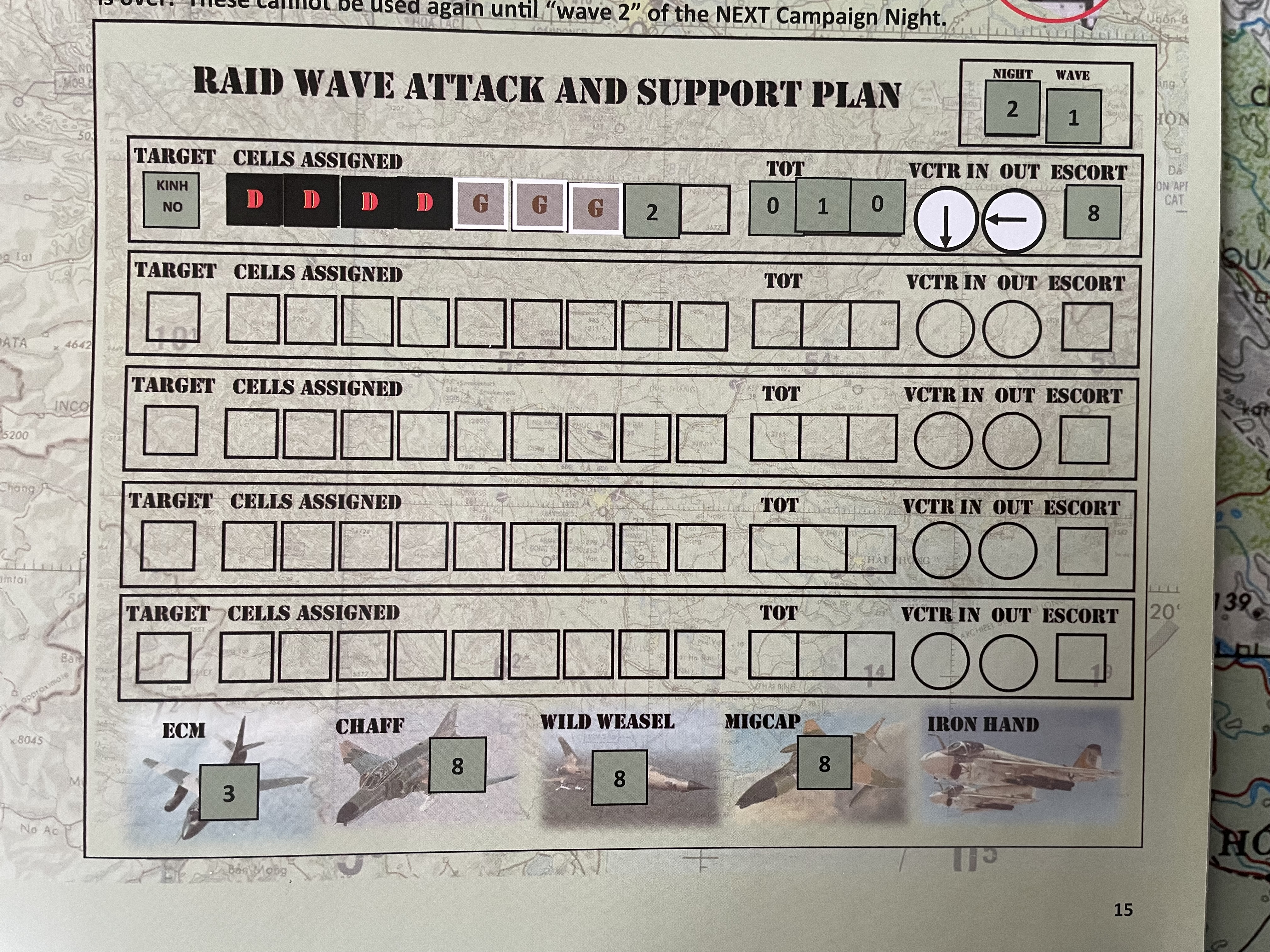 The sequence of play for Linebacker II is fairly straight forward with each night (turn) played out through the course of three broad arcs. The first is what I call the planning or organization arc.
