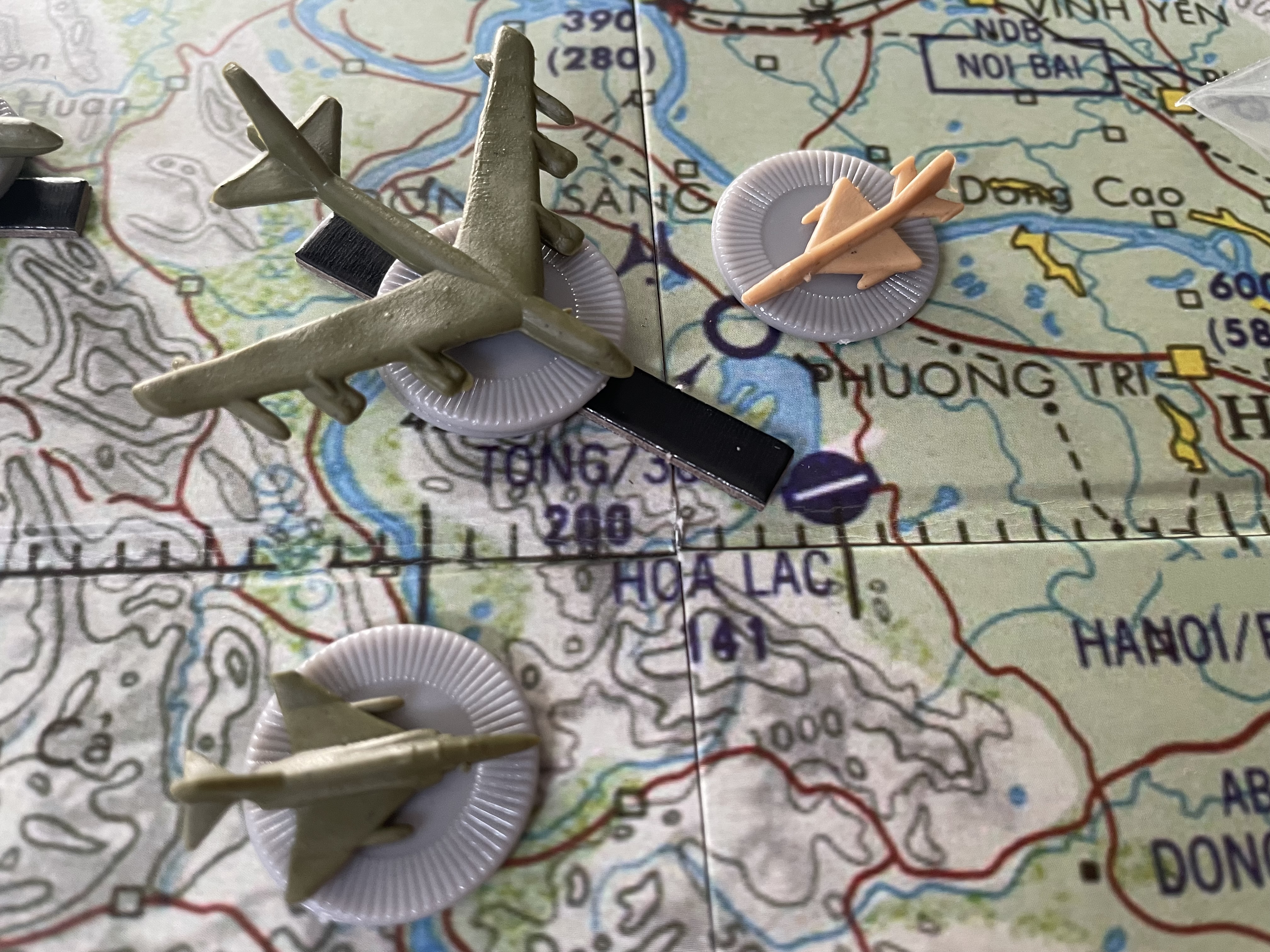 First night – US player wants no PTT and allowing for chaff but NVA player outguesses; all restrictions in effect (except 30 B-52s) (photo by RMN)