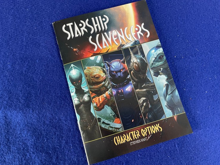 This past year I have backed multiple Kickstarter campaigns by Stephen Hart of The Grinning Frog to fill out my Starship Scavengers collection. Starship Scavengers is a set of solo play space exploration rules, or, as I like to call them, solo roleplaying game (RPG) adventures. The latest addition to the series, Starship Scavengers: Character Options, arrived this past week.