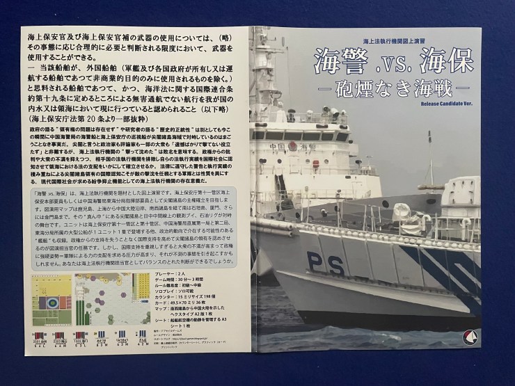 The board war game Maritime Police vs. Coast Guard – A No Gunfire Sea Battle (hereafter referred to as “the game”) deals with a hypothetical confrontation scenario between maritime law enforcement agencies near the Senkaku Islands in the mid-2020s.