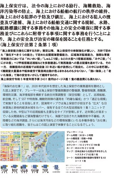 Work of the JCG is a tabletop exercise based on the operations of the Japan Coast Guard, assuming the first half of the 2020s.