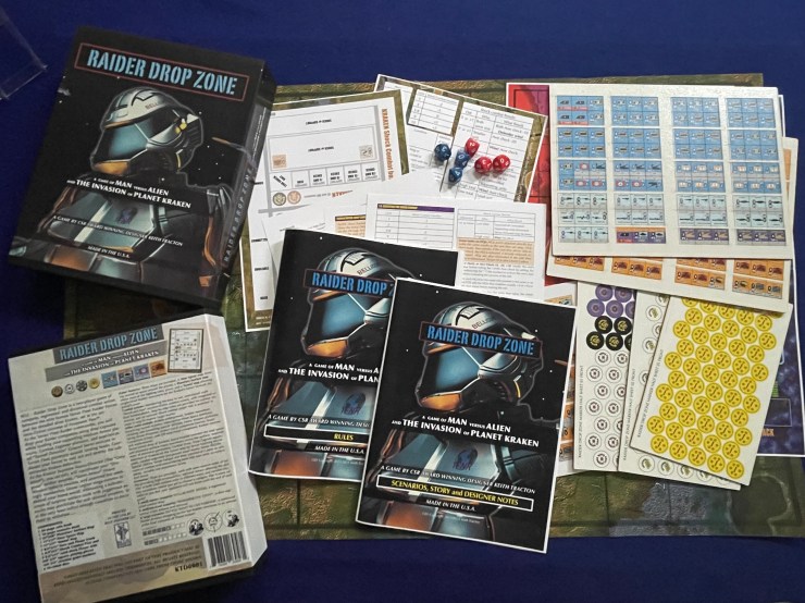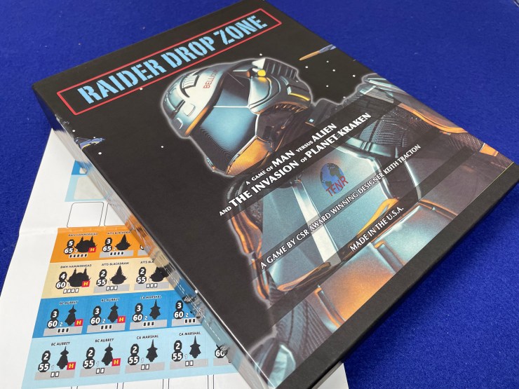 While the World at War 85 series is certainly Tracton’s most famous designs, the other two at the top of the list are a bit more personal.1 The latest, Raider Drop Zone: A Game of Man versus Alien and the Invasion of Planet Kraken, is a self-published title from Tracton using the printing services of Blue Panther.