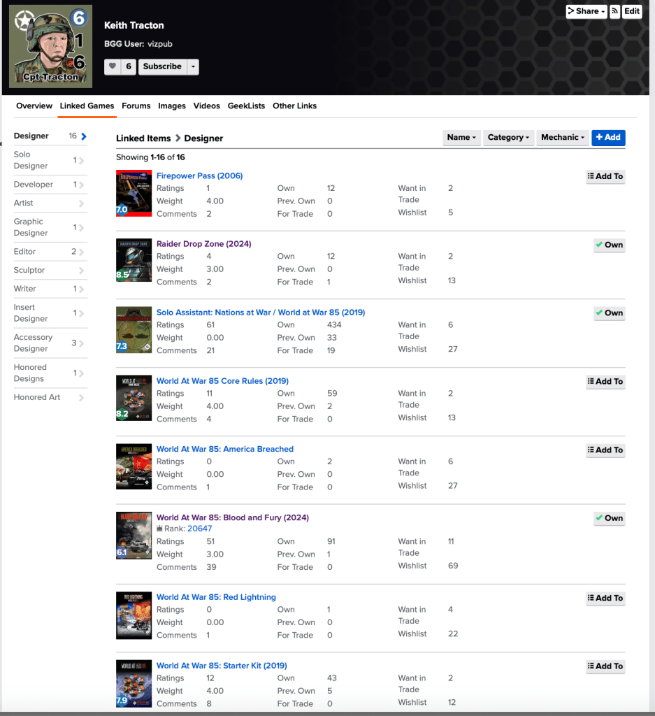 Keith Tracton is a wargame designer that hopefully you recognize. A review of his BoardGameGeek profile shows 16 linked games. Of those 16 games, 14 titles are associated with the World at War 85 series set in an alternate World War III and published by Lock n’ Load Publishing.
