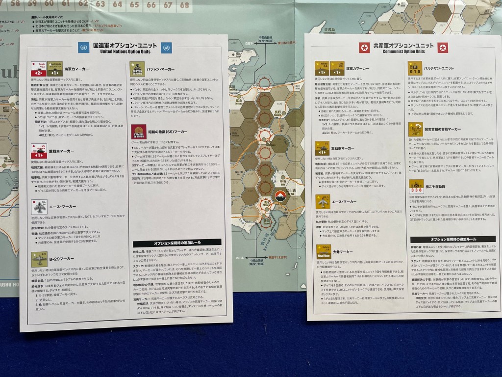 Designer’s Note: THW was published in Chinese by War Drum Games under the title To the South. This version introduced cards and Chinese People’s Volunteer Army units not present in the original. The Honshu War is the Japanese version of THW, with improvements made to address issues while minimizing changes to the game’s core components. Additionally, in homage to Daisuke Sato1, we couldn’t omit the inclusion of “battleships.” Indeed, THW was designed with inspiration from Seito (see Rule 14.0 for details on the designer’s historical alterations).