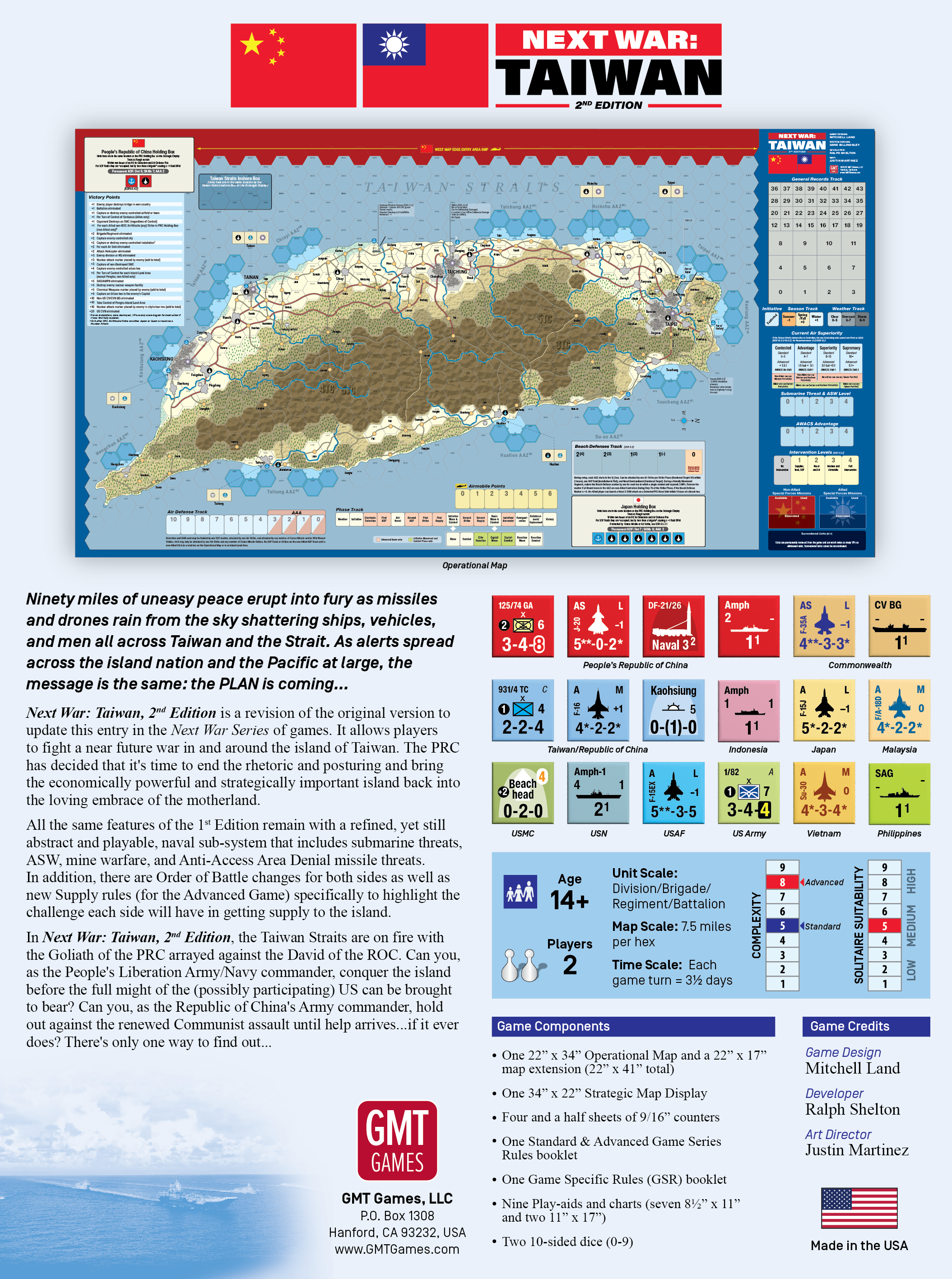 It appears that GMT Games has made a decision as to which printers to use for Next War: Taiwan 2nd Edition. PrinterS as in multiple printers. As Kai Jensen relates in the June 18 GMT Games update: