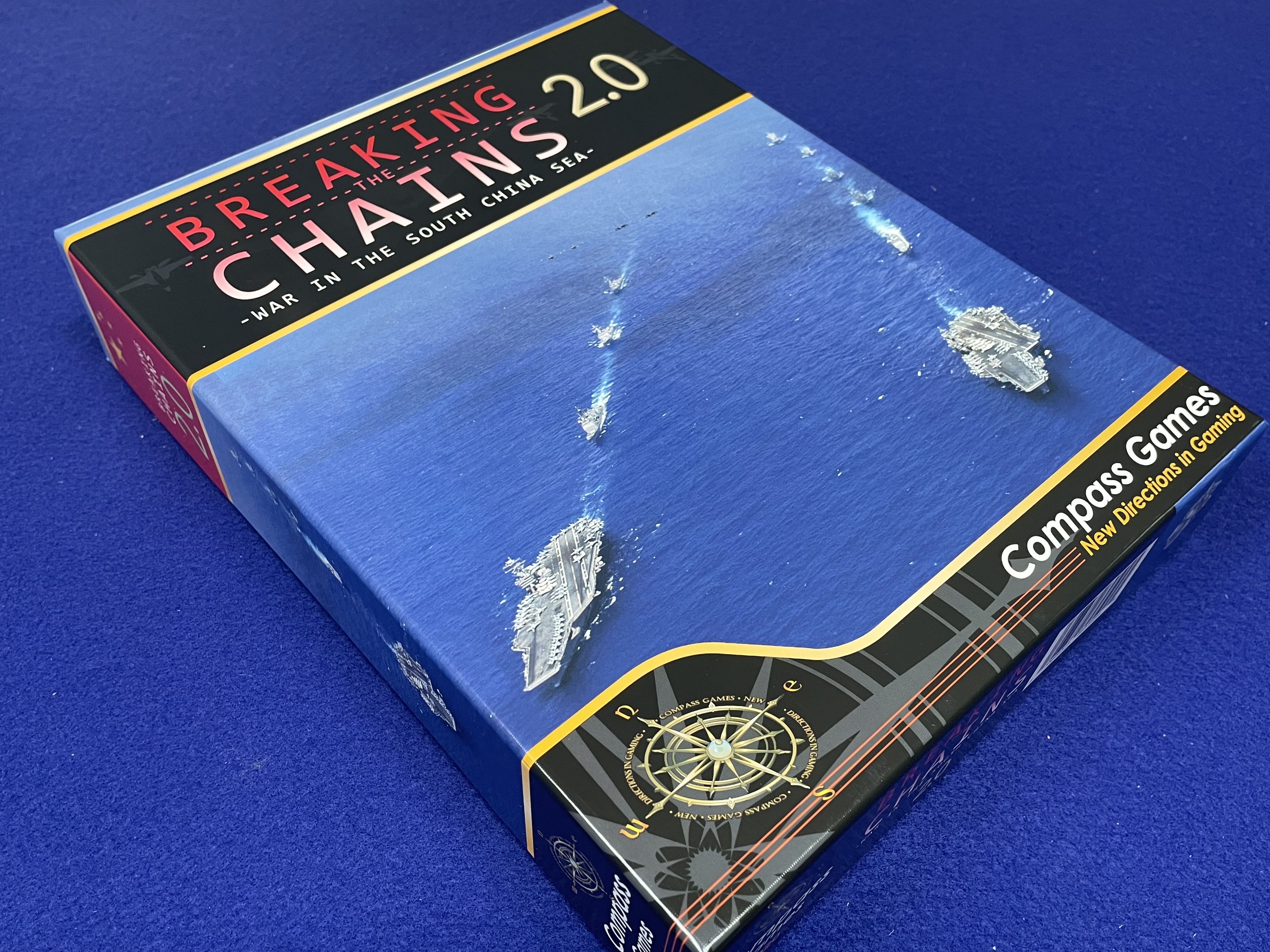 - For a naval-focused grand tactical (nee operational) wargame on situations in the South China Sea from a US perspective, see Breaking the Chains 2.0 from Compass Games.