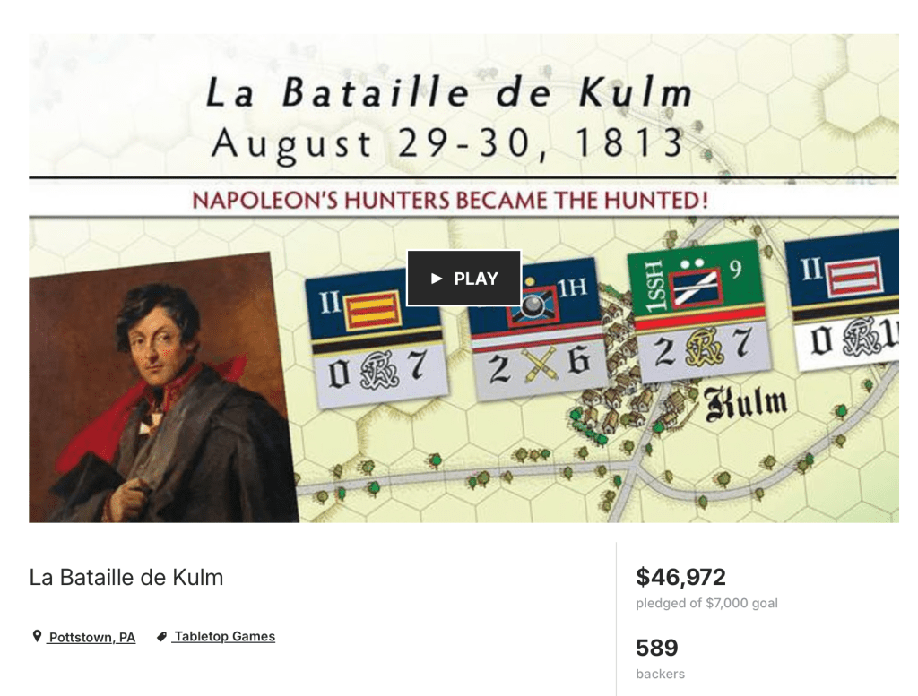 That said, I have long admired the presentation of La Bataille wargames. There is something about the way the counters and map look on a gaming table that greatly appeals to me. When LPS, Inc. opened a Kickstarter campaign for La Bataille de Kulm I was interested mostly because they marketed this new game as a smaller introduction to the La Bataille series: