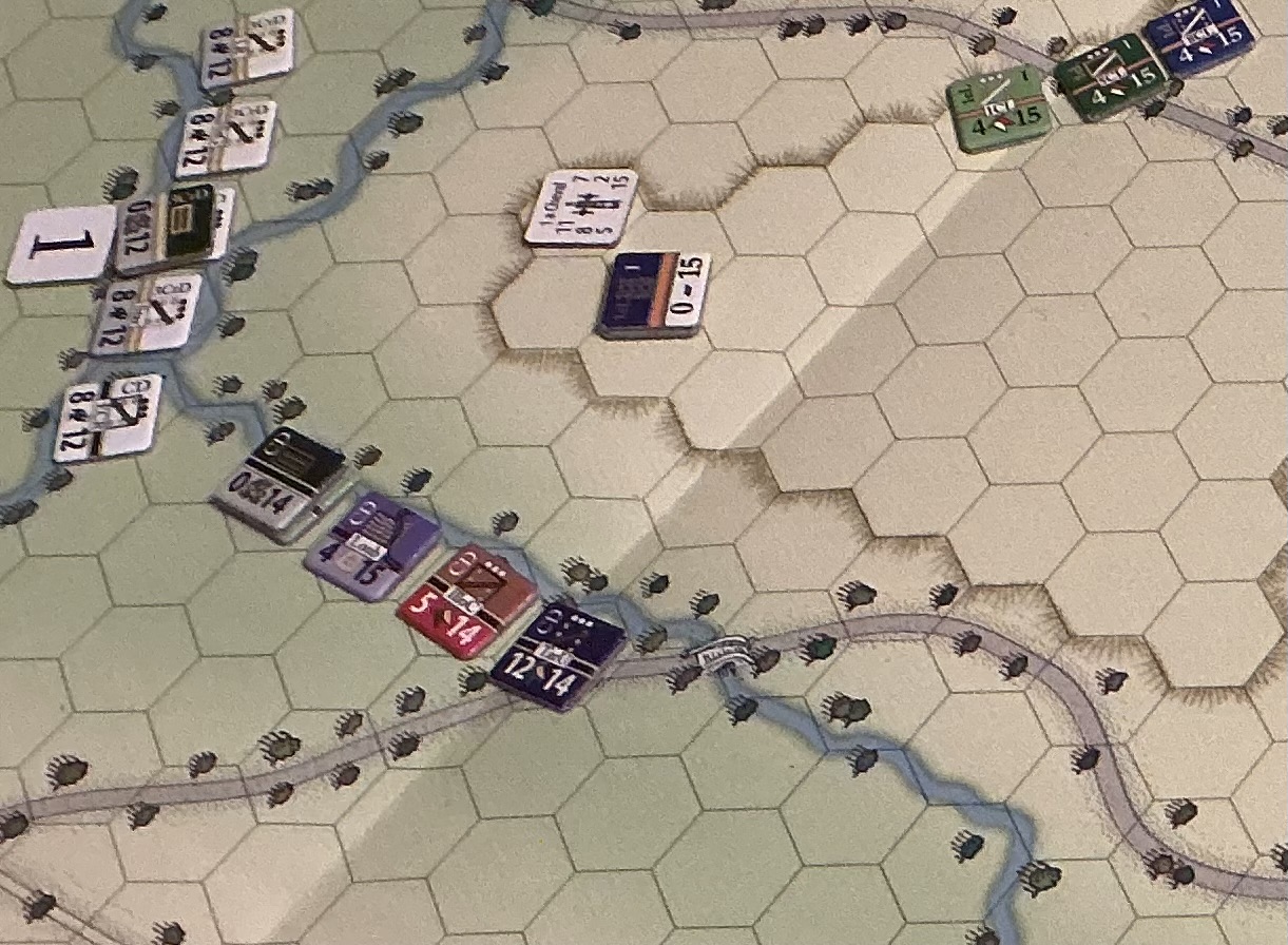 Time of Play. The Day 1 scenario is 24 turns (!); if each turn takes as little as 20 minutes to play that is still an eight hour game. Now the timing rule of 9.1.1 makes sense—and is very welcomed. La Bataille de Kulm is certainly a “weekend” or “game of the week” wargame title. [As I was in a learning game my early turns took closer to 30 minutes but, as I became more comfortable with the game system, later turns took about 20 minutes—meaning each simulated turn on the game table took about as long the time it represents in real life.]