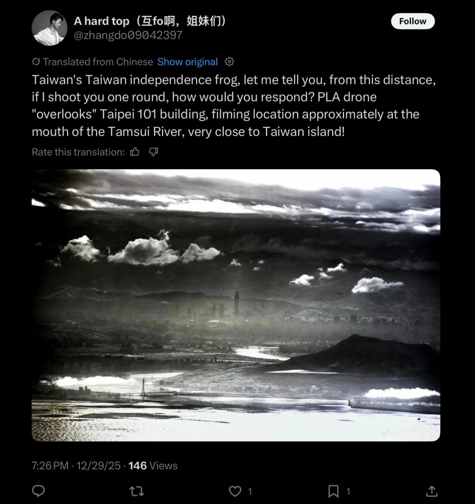 “The PRC [People’s Republic of China] has decided that it’s time to end the rhetoric and posturing and bring the economically powerful and strategically important island [of Taiwan] back into the loving embrace of the motherland.”