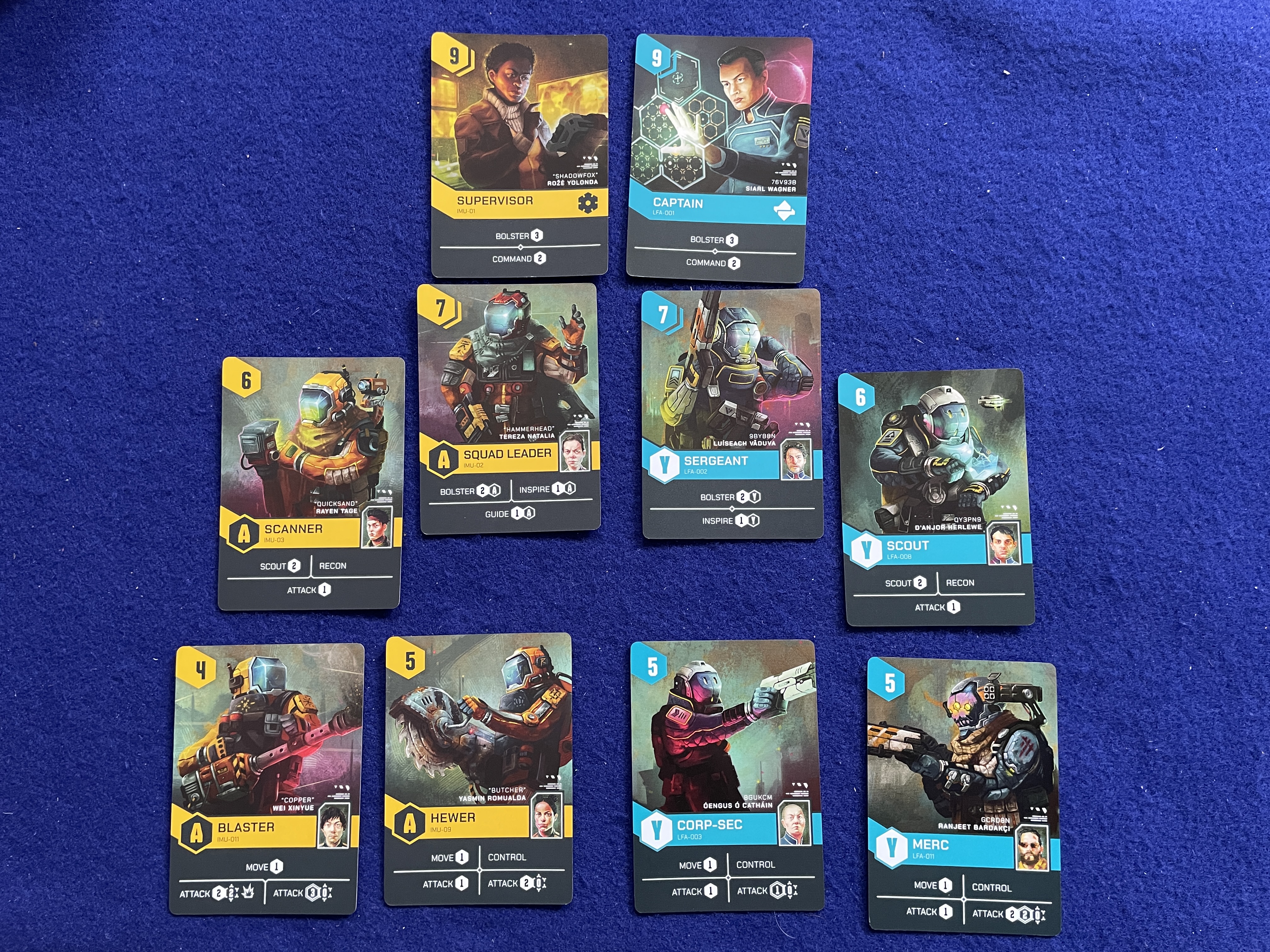 The core game mechanism in Undaunted 2200: Callisto is built around the cards. There are three types of cards in the game: