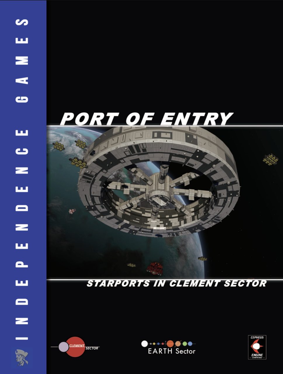 Port of Entry: Starports in Clement Sector details everything you need to know about visiting a port facility in either Clement Sector or Earth Sector. The book covers all of the different classes, types, ratings, and styles of port facilities, how they are classed and rated, and what a spacer might find at the port. Port of Entry covers all of the rules, regulations, and laws one might encounter as well as detailing all of the services that ports might offer from restaurants and hotels to garbage disposal and ship repairs.