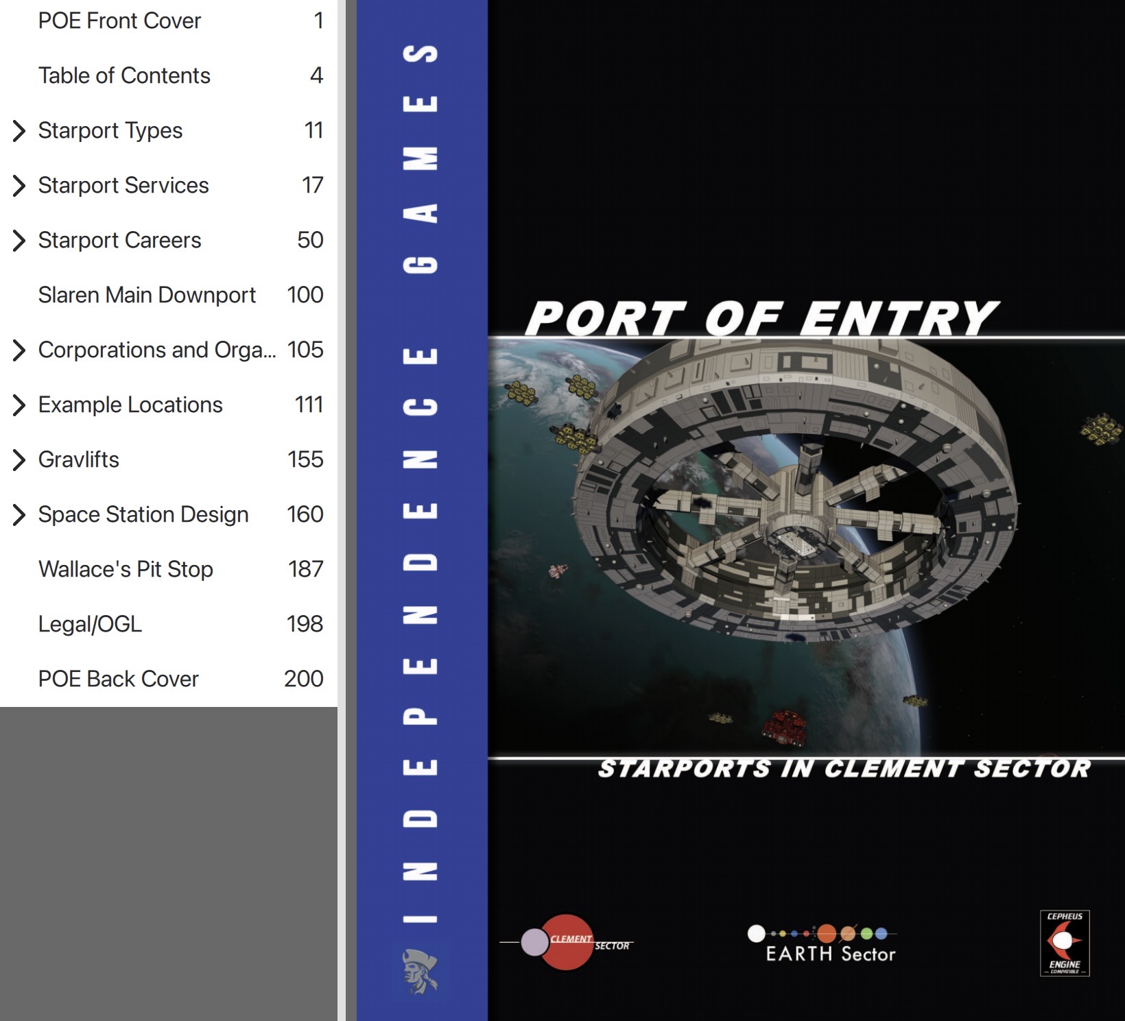 Port of Entry, like so many Independence Game sourcebooks, is more than just a collection of information. There are so many adventuring plot hooks and inspiration within the 200 pages that an entire campaign could be created and run around just a single Starport. Port of Entry is the Traveller/Cepheus Engine RPG gateway book to your own Babylon 5 or DS9 adventuring.