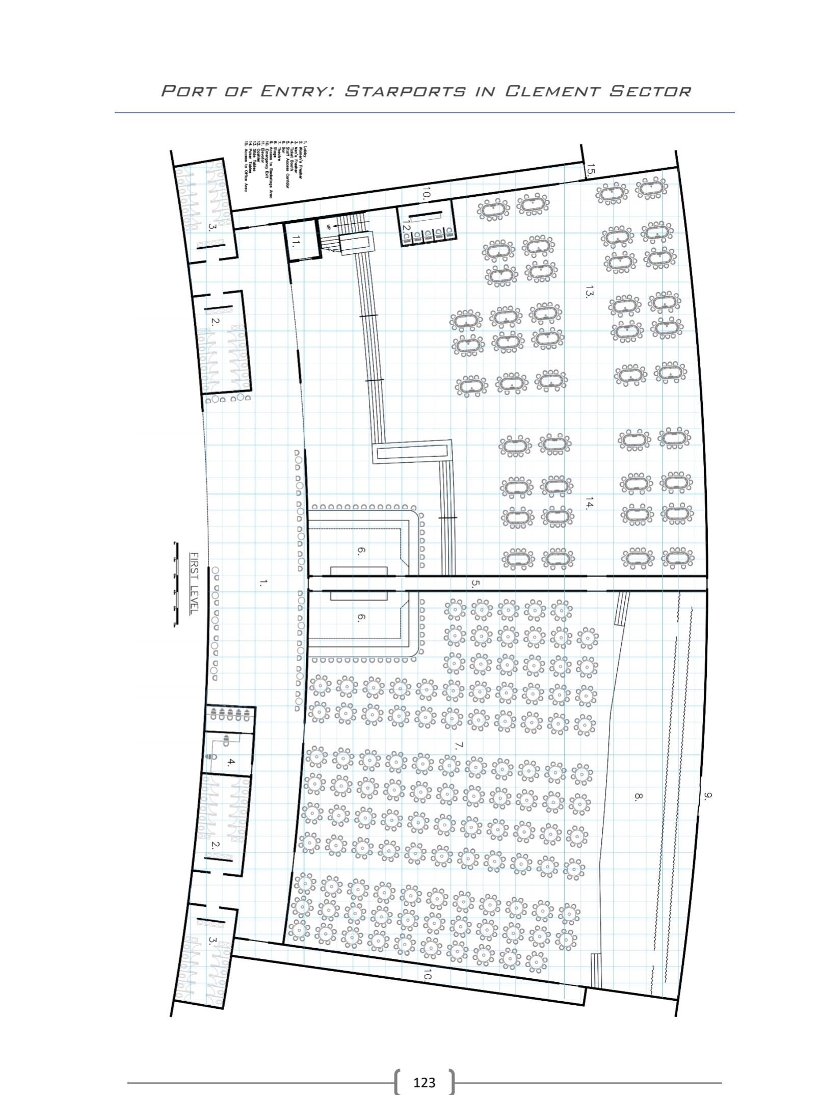 - Highports and Downports are discussed, as well as “shuttleports” or “local ports” (p. 11) that get away from the One Planet = One Starport trope that is so easy to fall into. See also the sample “Slaren Main Downport” (pp.96-103)