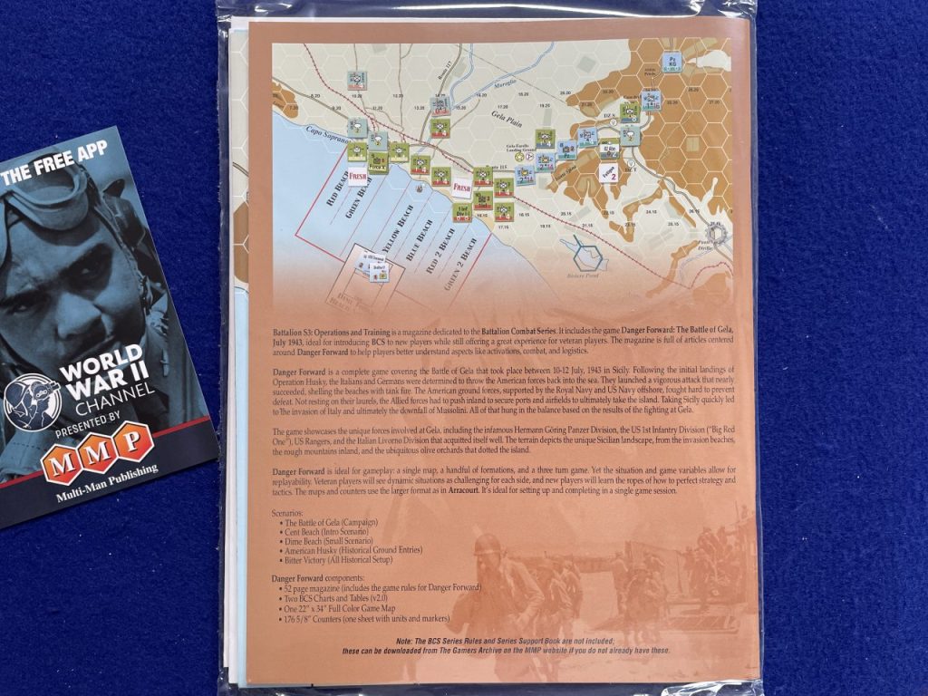 Battalion S3: Operations and Training is a magazine dedicated to the Battalion Combat Series. It includes the game Danger Forward: The Battle of Gela, July 1943, ideal for introducing BCS to new players while still offering a great experience for veteran players. The magazine is full of articles centered around Danger Forward to help players better understand aspects like activations, combat, and logistics.